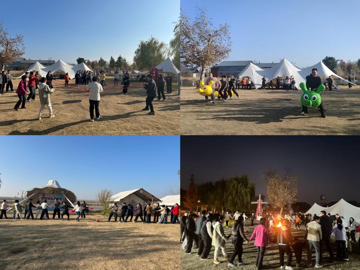 随后的拓展环节气氛热烈。在“同心鼓”项目中,各小组密切配合、不断调整,在默契协作中完成挑战;“毛毛虫快跑”则考验团队节奏与协调,各组口号一致、步伐统一,即使途中出现小插曲也迅速调整,欢笑声中尽显协作精神;拔河比赛更将活动推向高潮,双方全力投入,展现出拼搏与团结的力量。