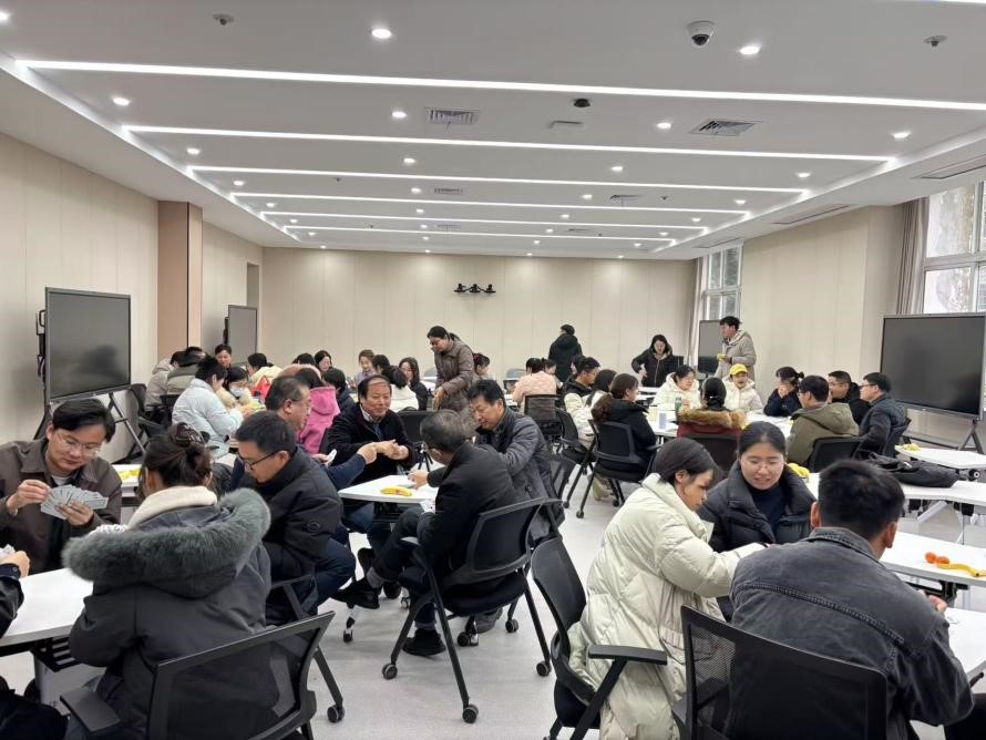 为丰富教职工文化生活,提升团队凝聚力,营造积极活泼、和谐融洽的氛围,地理与规划学院分工会于12月24日下午开展了以“智趣相融,携手共进”为主题的狼人杀与掼蛋友谊赛。活动吸引了学院众多教职工踊跃参与,现场气氛活跃笑声阵阵,暖意融融。