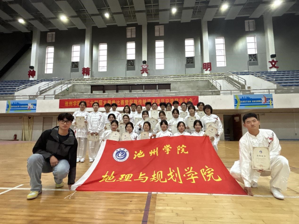 为弘扬中华优秀传统文化,营造富有文化底蕴的校园氛围,2025年10月29日下午,池州学院太极拳比赛在体育馆成功举办。地理与规划学院代表队在比赛中表现出色,凭借行云流水的招式、高度默契的配合,从众多参赛队伍中脱颖而出,荣获二等奖,为学院赢得了荣誉。