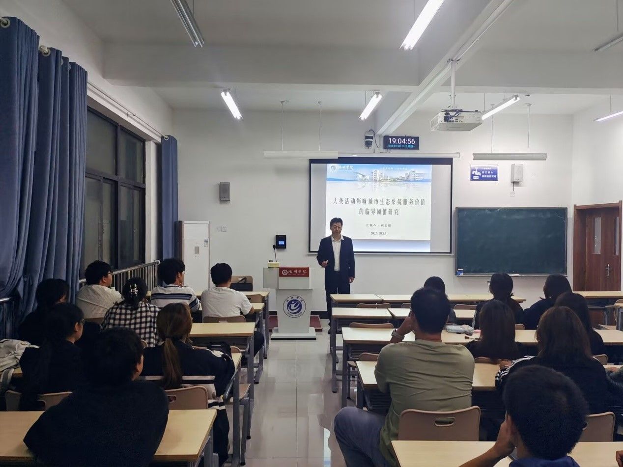为提升学科专业素养,培养学生的学术研究兴趣,10月13日晚上,地理与规划学院姚志强副教授在公教北215作了题为“人类活动影响城市生态系统服务价值的临界阈值研究”的学术讲座,2024级地理科学专业学生参加此次报告会。