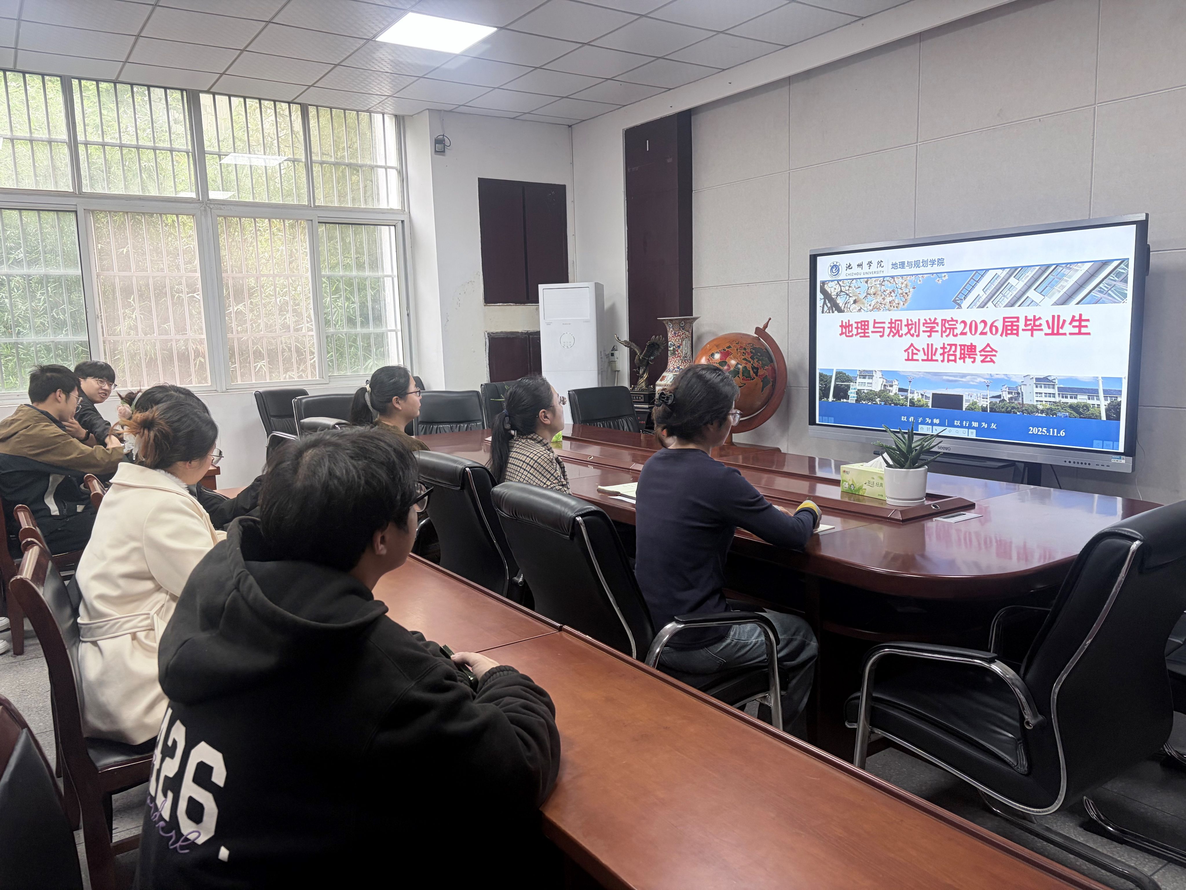 为全力促进2026届毕业生高质量就业,地理与规划学院积极行动,11月6日,在博文楼会议室举办现场招聘会,安徽鑫昇国土资源综合服务有限公司、池州耀城全案营销策划有限公司两家企业参与其中,为同学们提供了丰富的就业选择。