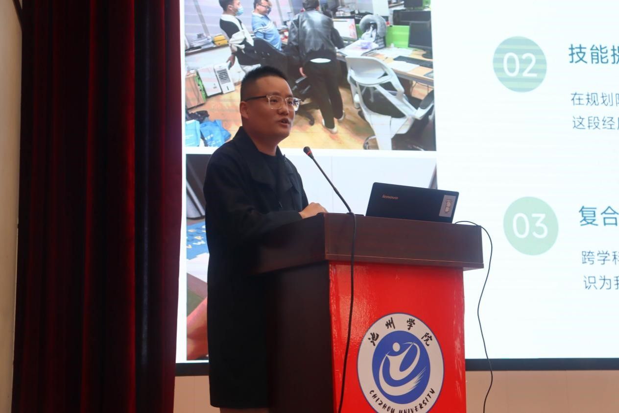 来自2019届土地资源管理专业毕业生孙超,现就职于池州高新技术产业开发区管理委员会规划与建设局,他以“明晰前路,笃定选择”为主题,分享了自己在企业就职、考取公务员的6年心路历程,传授给毕业生四把行动钥匙:自我认知与提前规划、夯实专业与实习试错、公职备考的系统方法、终身学习与韧性心态。他用生动的案例和真挚的话语,让同学们对未来的职业发展有了更清晰的认识和更明确的方向,现场不时响起阵阵掌声。