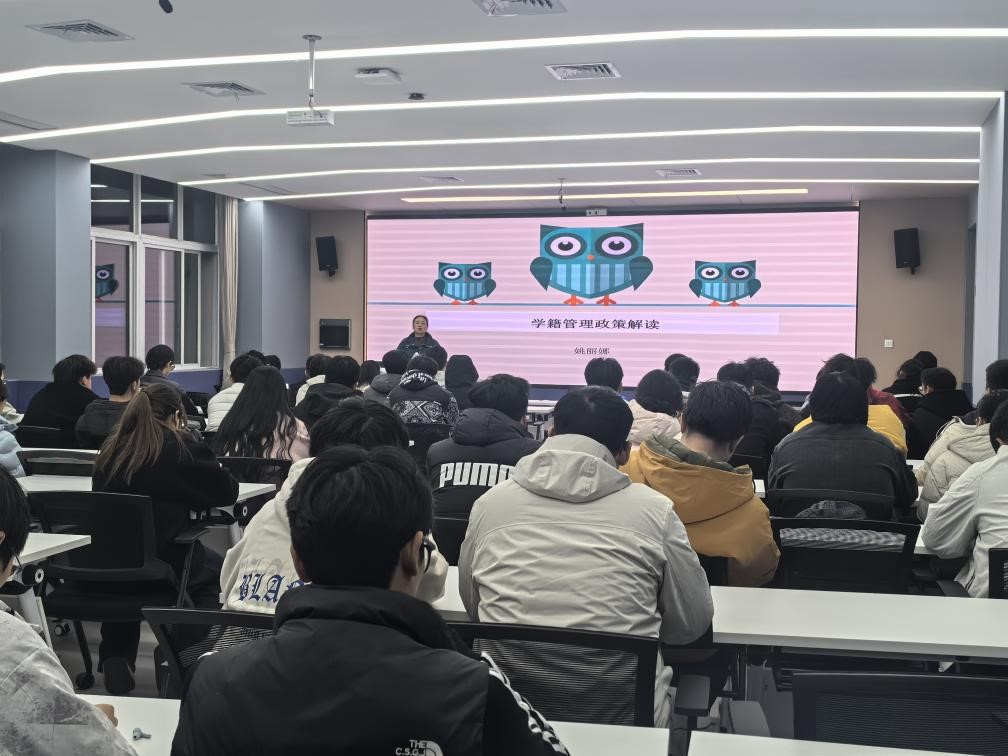 会议中,姚丽娜对学籍管理关键政策进行了系统解读,详细阐述了毕业与学位授予的具体条件,提醒学生要高度重视学业规划。针对学业过程管理,她重点说明了学业预警机制、编下、退学、毕业学位授予条件等政策规定,强调了学业质量底线。同时,她对学生入伍后的学籍保留与学业保障措施,以及其他常见学籍异动办理要求进行了清晰说明,引导学生增强规则意识,审慎对待学业选择,确保学业道路的平稳有序。