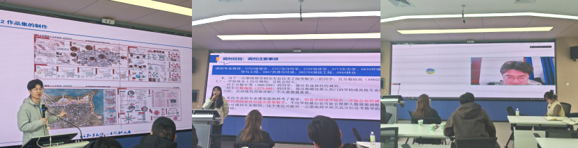 会上,优秀学长学姐结合自身经历分享复试经验。来自苏州科技大学城乡规划专业的赵衡哲校友,从复试流程、作品集准备、复试技巧等方面,为同学们梳理了线下复试的核心要点;安徽师范大学自然地理学专业的杨梦婷校友,分享了复试与调剂的实战经验,详细介绍了5人考官组的面试应对策略;合肥工业大学的范许文校友则通过线上平台围绕复试参考书选择、面试注意事项、导师的选择与联系等内容,为同学们提供了针对性指导。